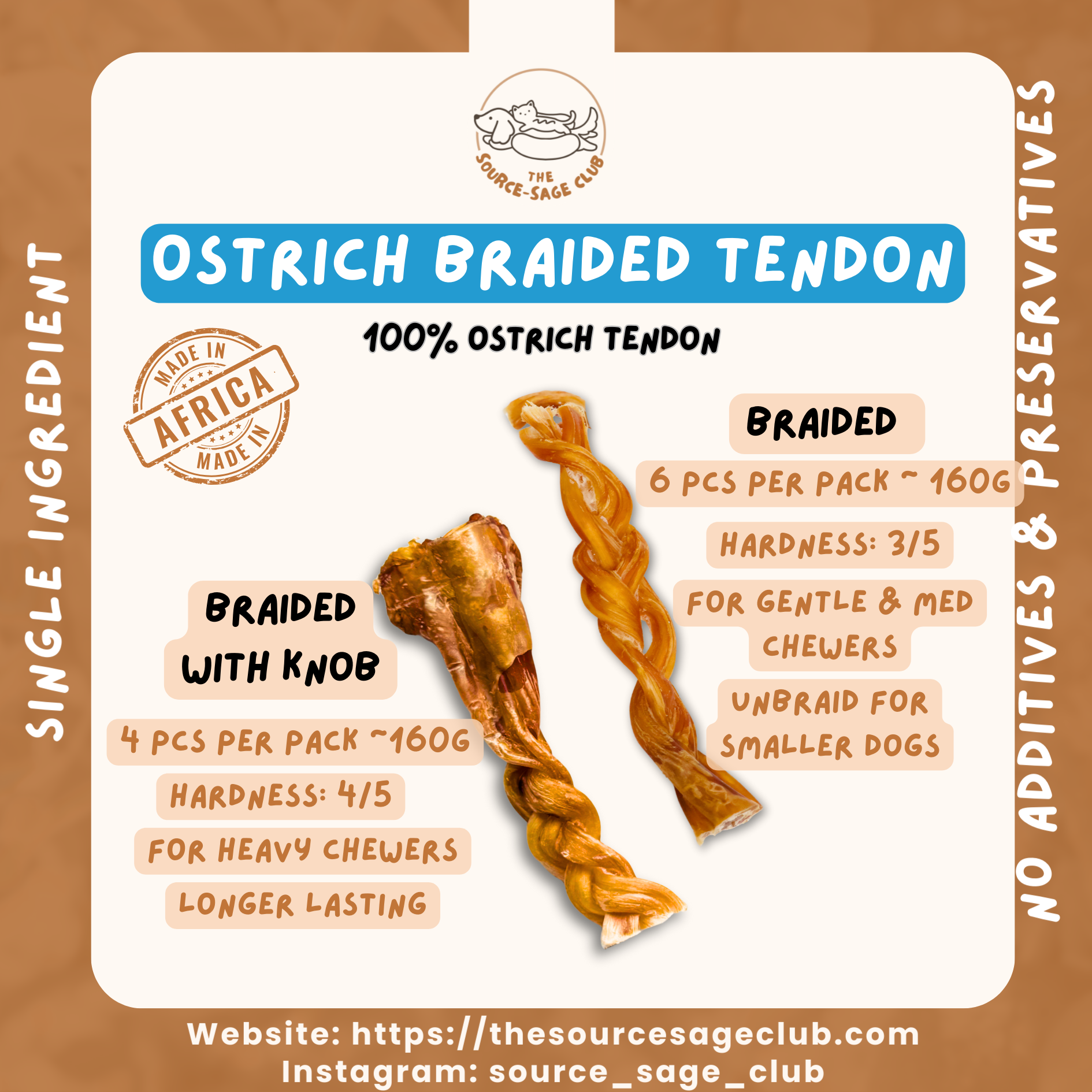 Air Dried Braided Ostrich Tendon (single ingredient dog treats, dog dental chew) Sourcesage Club