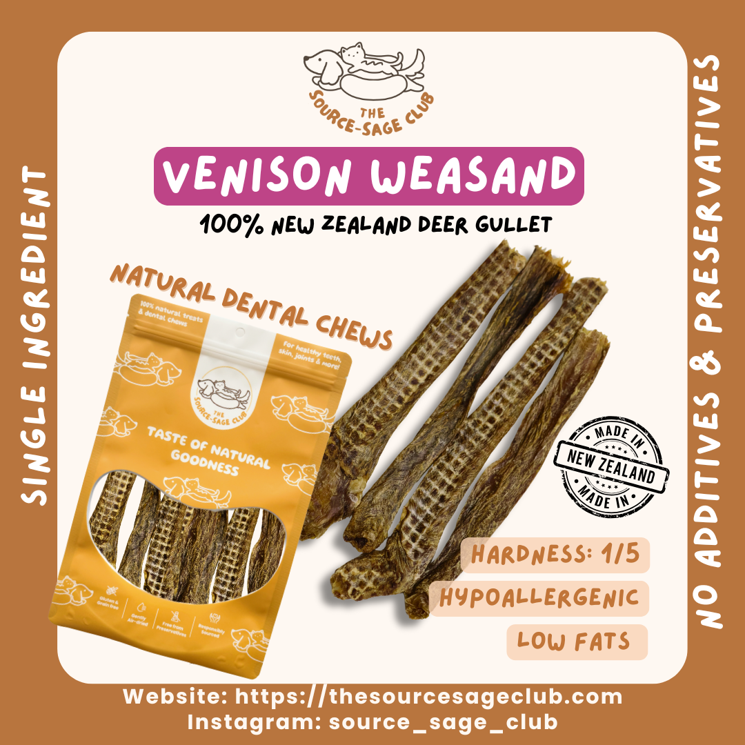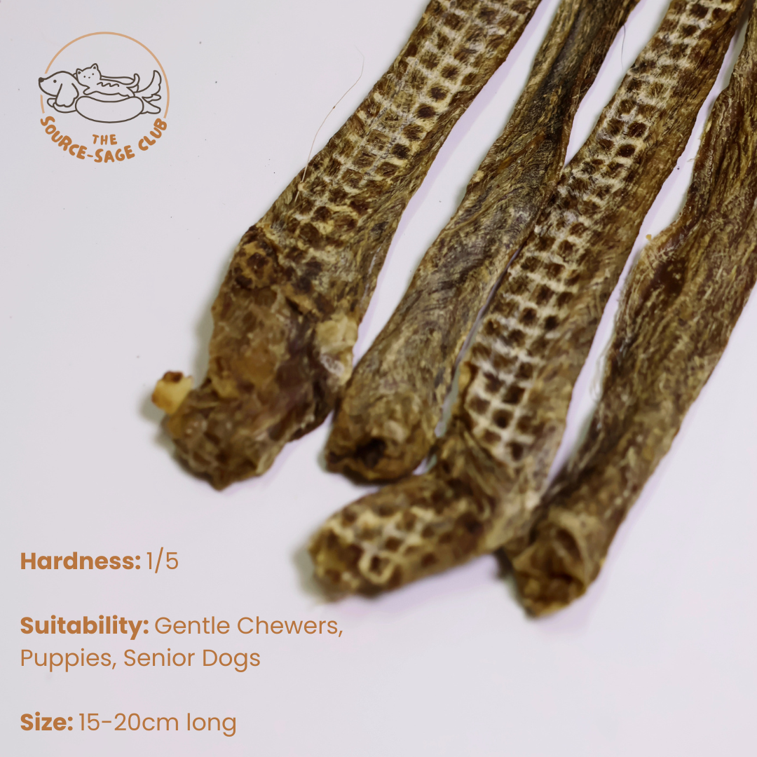 Air Dried New Zealand Venison Weasand (Esophagus) (single ingredient dog treats, dog dental chew)