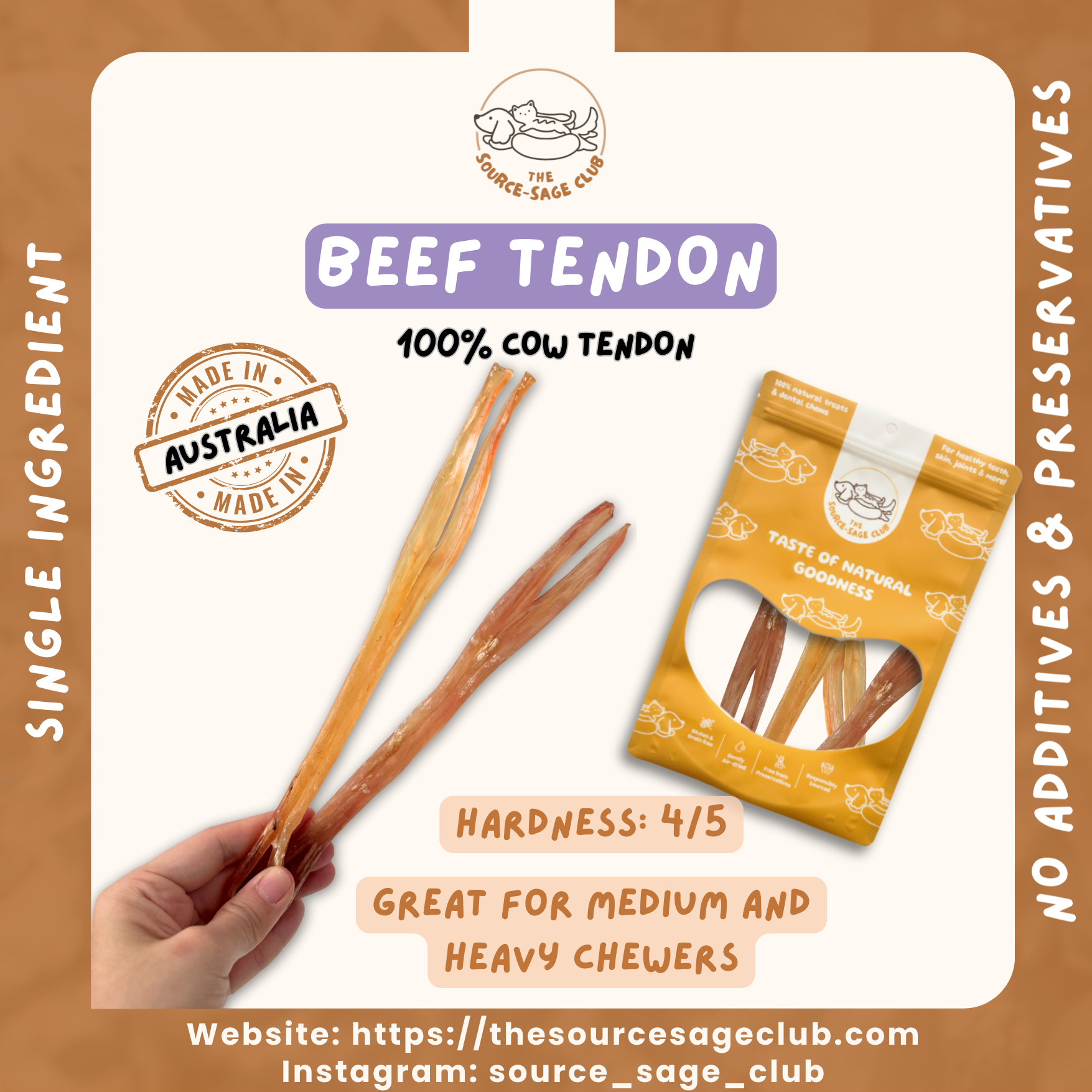 Air Dried Beef Tendon (single ingredient dog treats, dog dental chew) Sourcesage Club